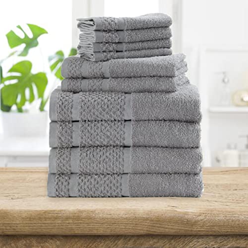 SEDLAV Bath Towel Set with Upgraded Softness & Durability, 100% Cotton (10 Pack) (Gray)