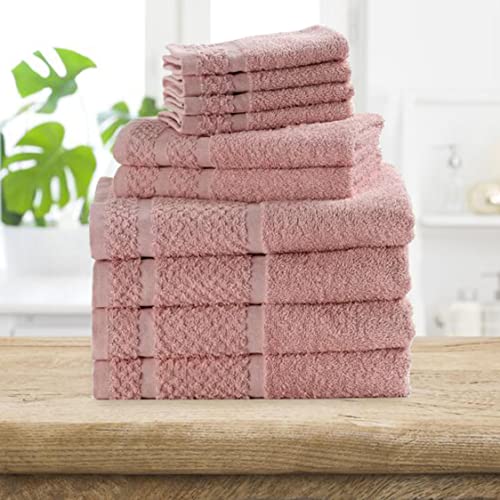 SEDLAV Bath Towel Set with Upgraded Softness & Durability, 100% Cotton (10 Pack) (Pink)