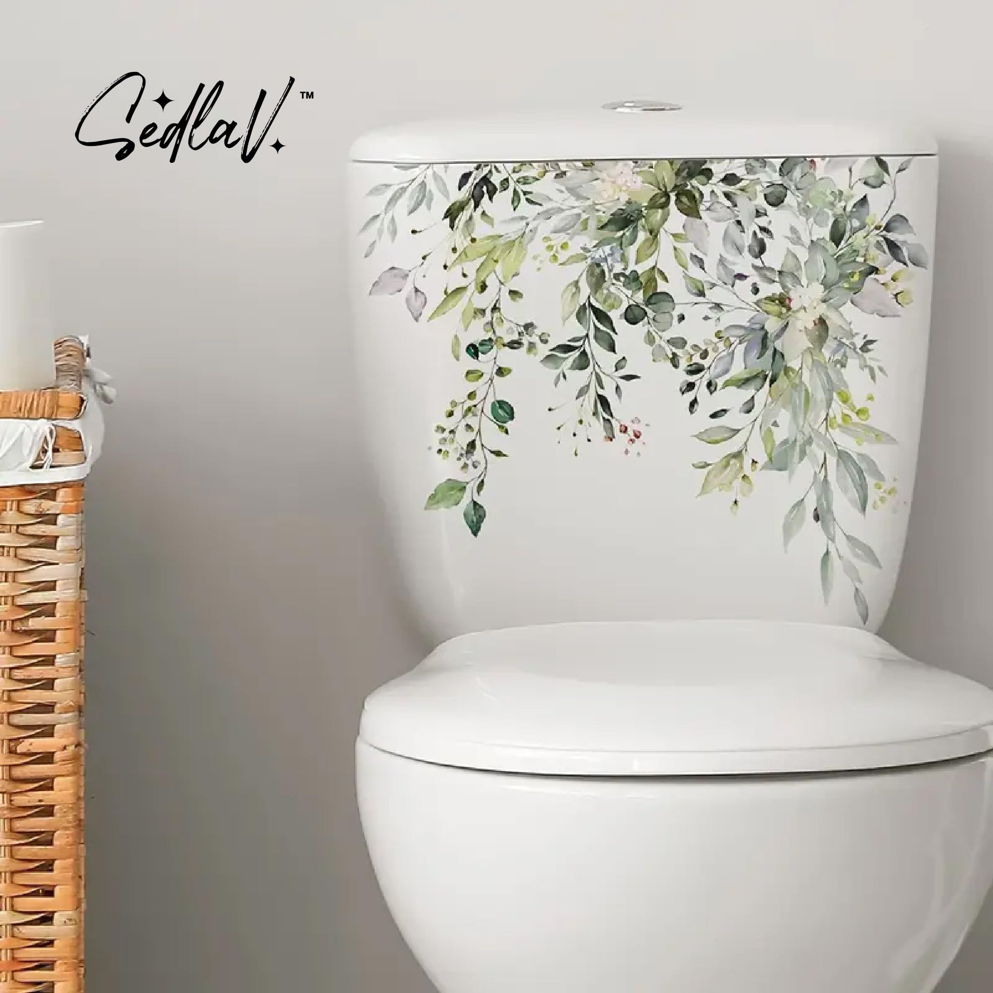SEDLAV Green Plant Leaves and Flowers Toilet Stickers - Self-Adhesive Toilet Lid and Wall Decor Decal Set for Bathroom WC Restroom Removable Waterproof Toilet Sticker