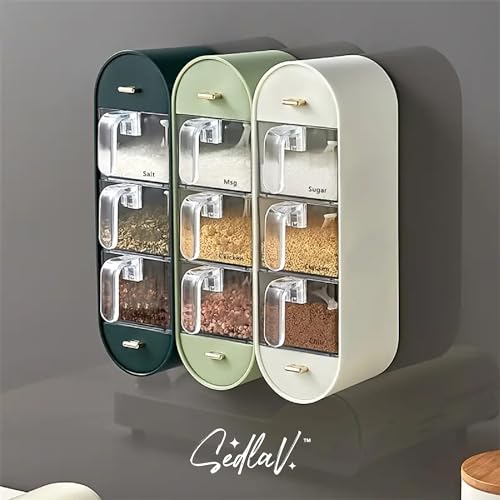 SEDLAV Wall-Mounted Spice Box Organizer - Premium Plastic Seasoning Storage with Sealed Lid & Pre-Printed Notices - Spice Organizer to Keep Spices Fresh and Odor-Free