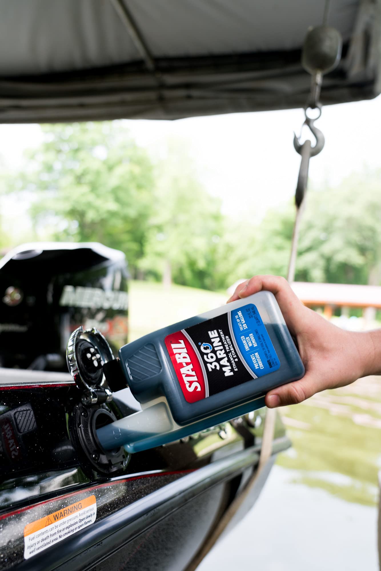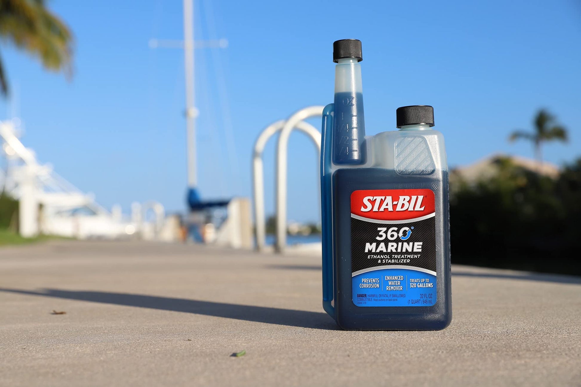Details: As America's #1 Ethanol Treatment, you can trust STA-BIL 360 Marine to keep your gasoline-powered engine running at peak performance, and is safe for use in all gasoline engines, including 2-cycle and 4-cycle. By preventing the buildup of unwanted gum and varnish, this product is recommended for use in your boat, jet ski, and other nautical gasoline-powered equipment. STA-BIL 360 Marine Ethanol Treatment & Fuel Stabilizer prevents corrosion caused by ethanol blended fuel. Effective in all gasoline blends, including ethanol and non-ethanol, this product helps increase engine power and fuel efficiency. STA-BIL 360 Marine is engineered to combat the negative effects of ethanol-blended fuels. This industry-leading formula prevents corrosion, cleans the fuel system, and prevents the buildup of unwanted gum and varnish ensuring your equipment will be ready to go whenever you need it. 1oz treats 5 gallons of gas. If using with small engine equipment pour directly into your gas can. If adding directly to your boat it is best practice to add STA-BIL 360° Marine before adding fresh fuel at the pump. This product is designed to be added to the fuel as soon as you get it that way you know the fuel is fresh. This formula will also keep gas fresh for up to a year. Use throughout the season to ensure smooth sailing year-round!.