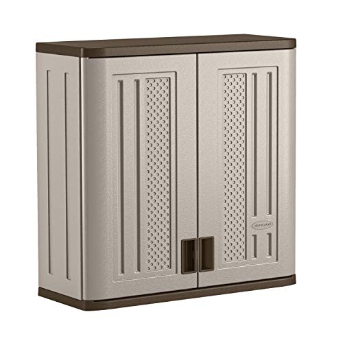 Details: Suncast garage storage shatters the notion that garage organization needs to be metal to be strong and durable. With 27-1/4 in. W x 9-3/4 in. D x 27-1/2 in. internal dimensions, this Suncast wall storage cabinet is engineered from heavy-duty, blow-molded resin and stands up to whatever you throw in it - or at it. Constructed with reinforced, adjustable shelving and lockable handles, it protects equipment and gear and keeps dangerous tools and equipment safely stored out of the way. Plus, the resin housing is resilient to warping, rusting or denting, but is lightweight to make set-up easy. Also, unlike other products with bulky, squared-off edges, Suncast products have a sleek design that elevates the garage environment, creating an attractive space. For those serious about their garage, Suncast garage storage is the serious solution.