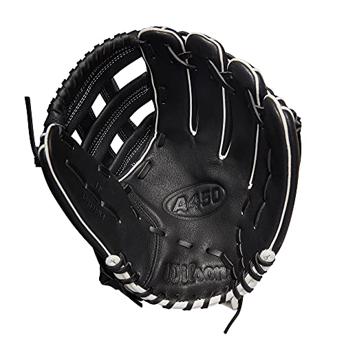 Details: Perfect your outfield fundamentals with the 2022 A450® 12” Outfield Glove. The Black and White design with a sturdy Dual Post Web is lightweight and game ready.